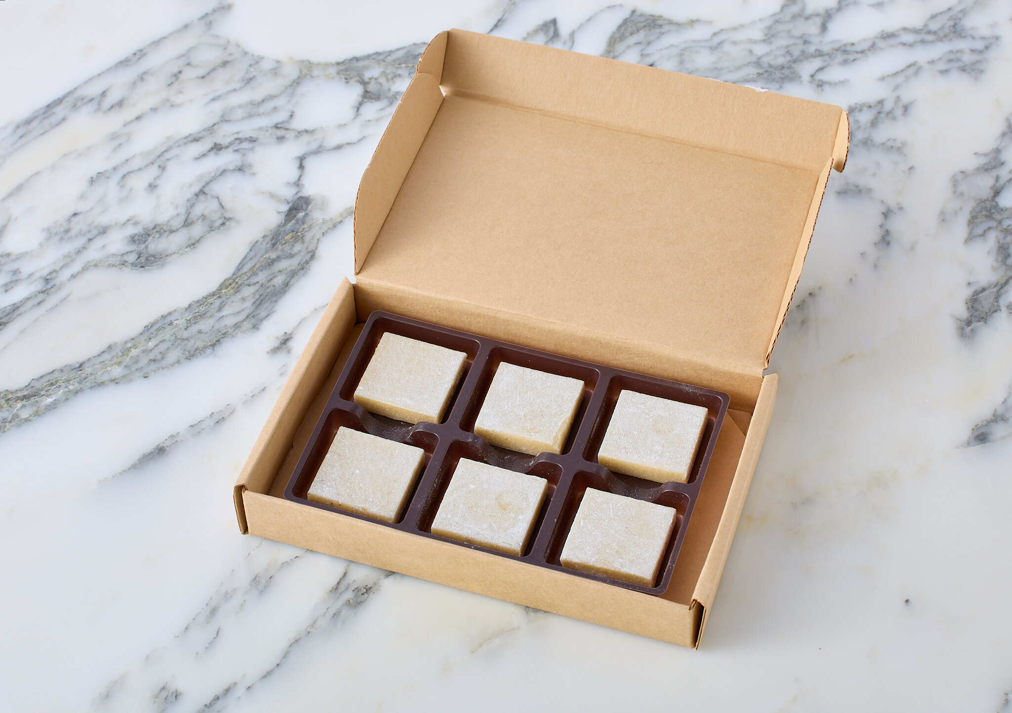 フルーツの香りとジューシーさを最大限に生かしたシリーズには、乳製品が入っていません。乳製品を使ってないと思えないほどコクのあるクリーミーさの秘密は、オーガニックのココナッツと未脱臭の芳醇なペルーのピウラ地方のカカオで作った自家製のプラントベースのショコラのおかげです。