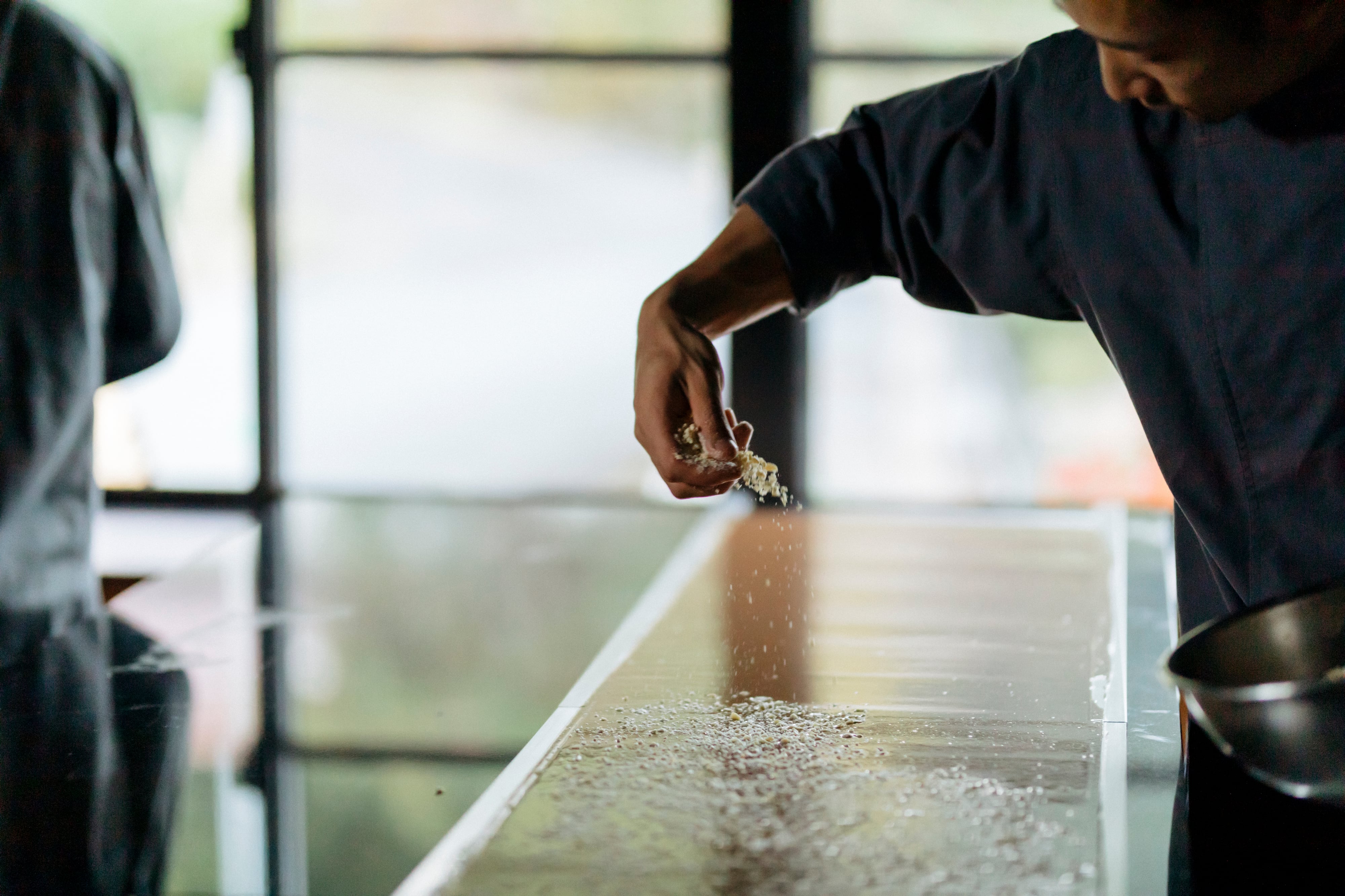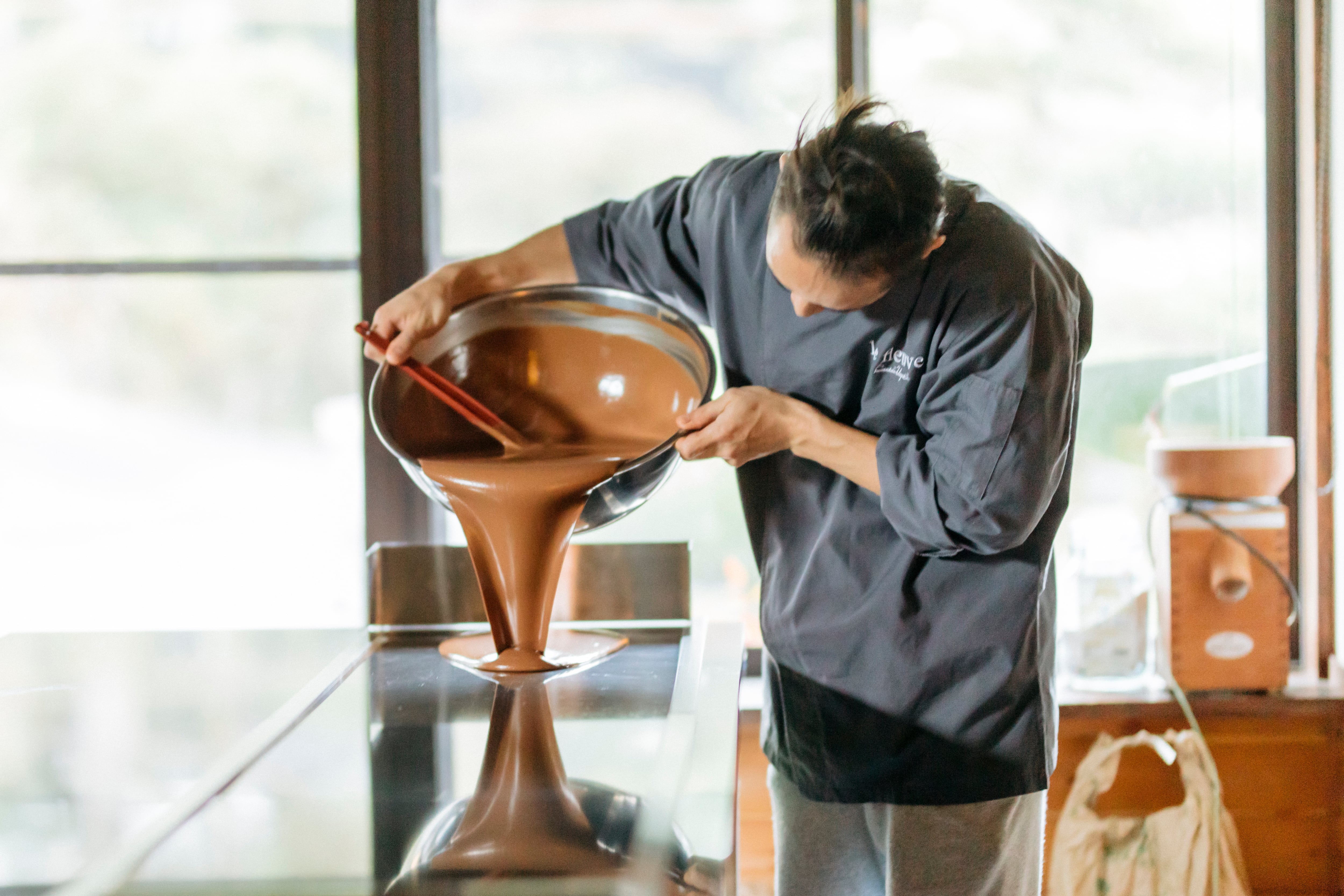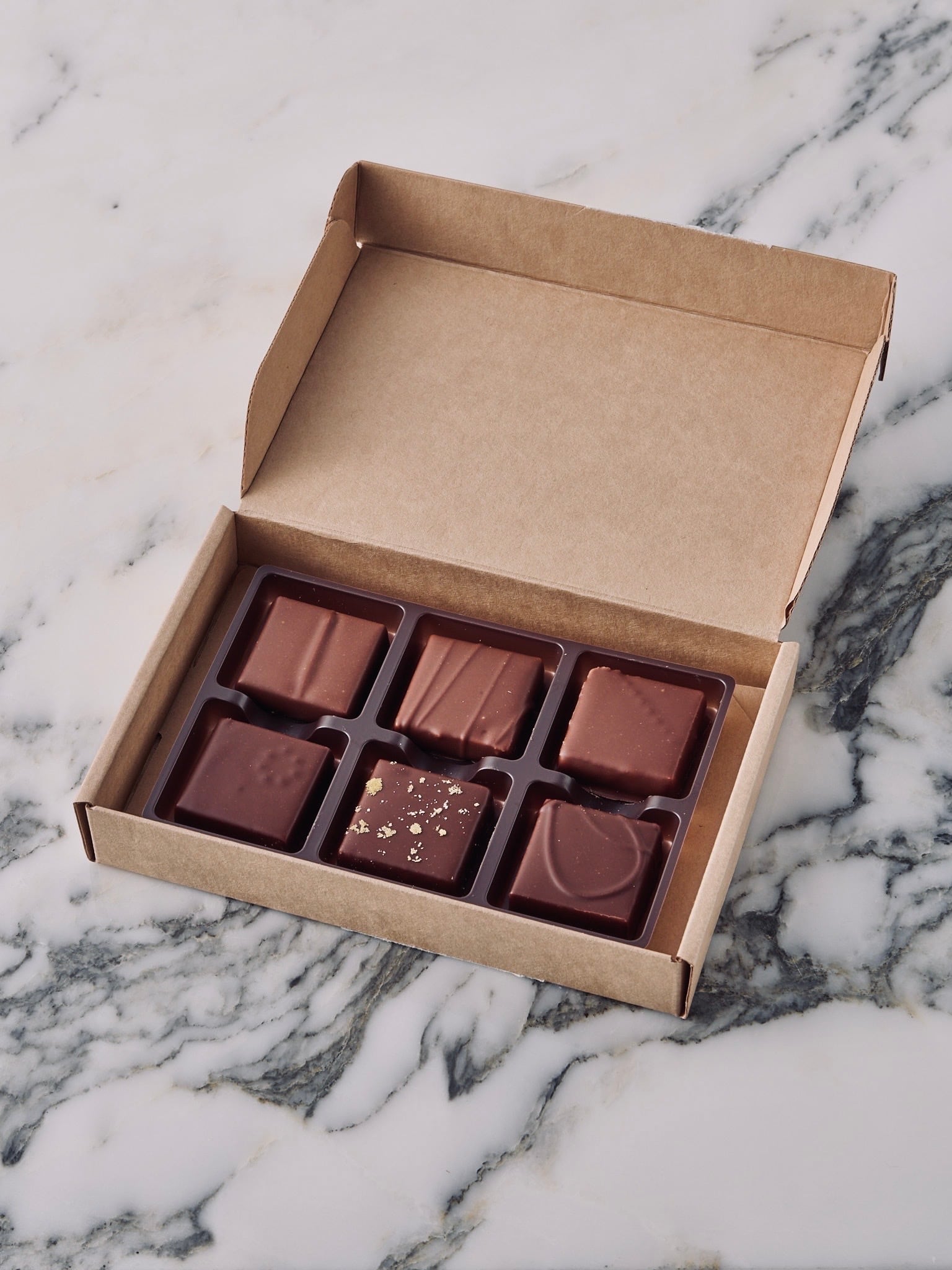 ミルクチョコレートの味わいにポルチーニを感じたところから着想を得たショコラ。ピエモンテ産のポルチーニのエキスを抽出してガナッシュに。