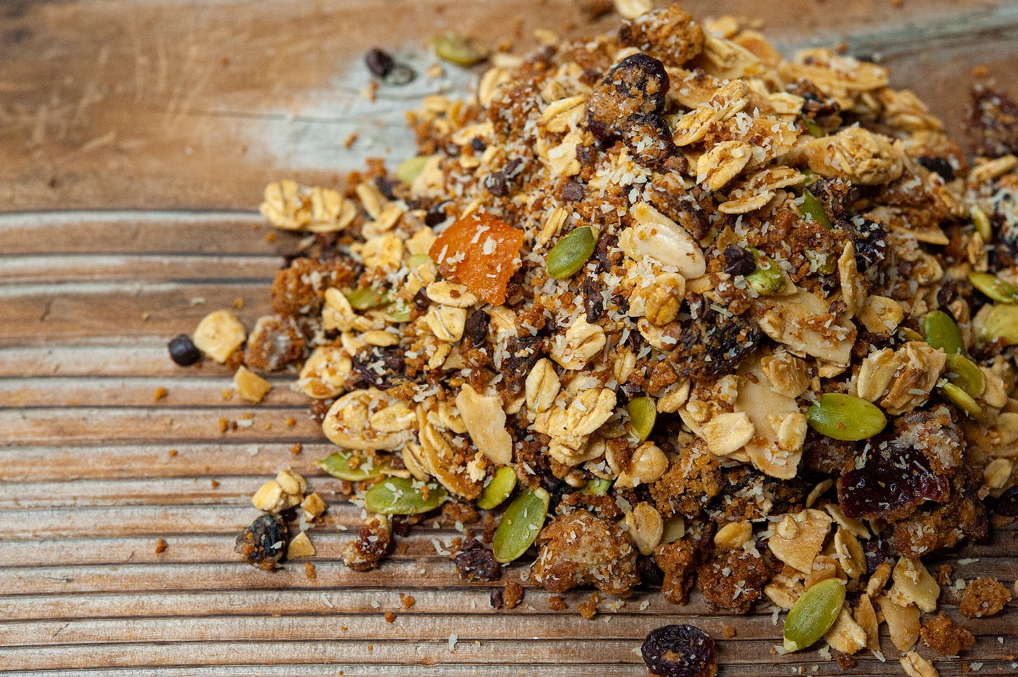 アーモンドをたっぷり使い、バターと自家製柑橘コンフィをたっぷりと使った、やさしいスパイスがアクセントのリッチなグラノーラができました。